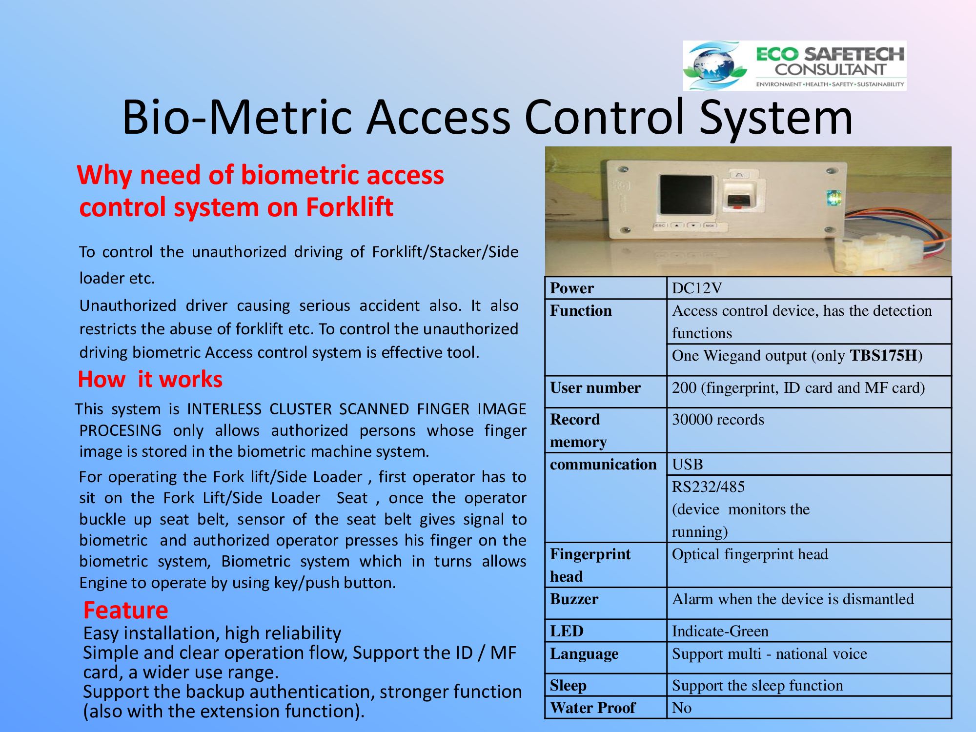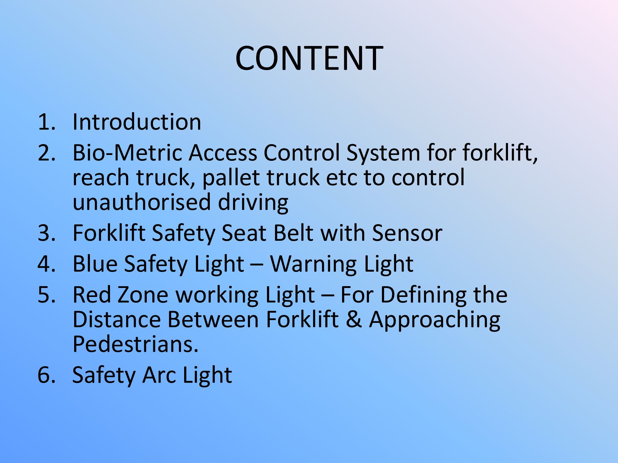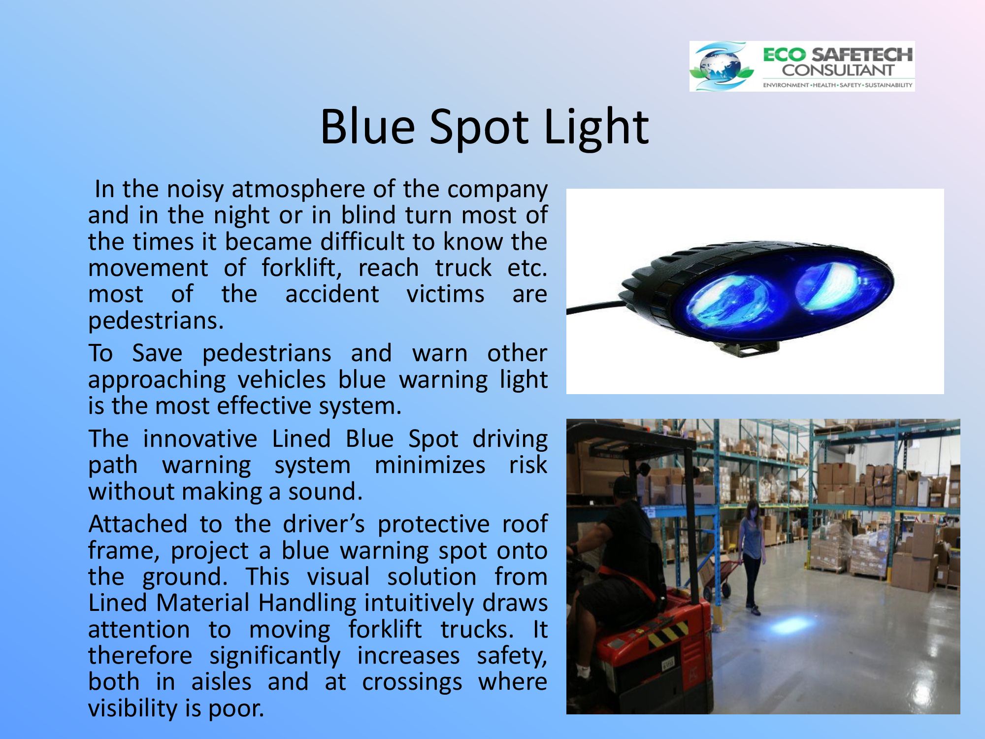 SAFETY SYSTEM FOR SIDE LOADER, FORKLIFT TRUCKS, STACKERS, PLATFORM TYPE TROLLEYS ETC.